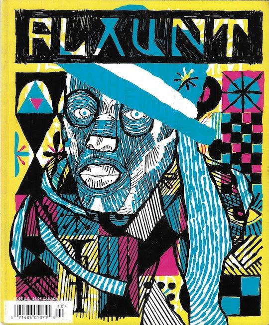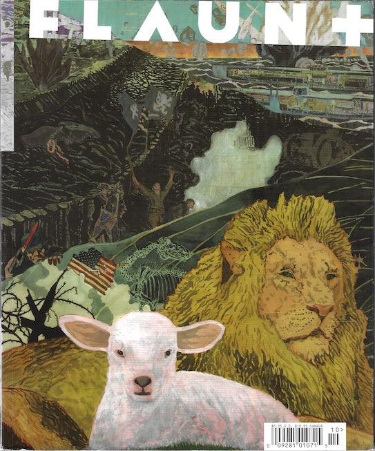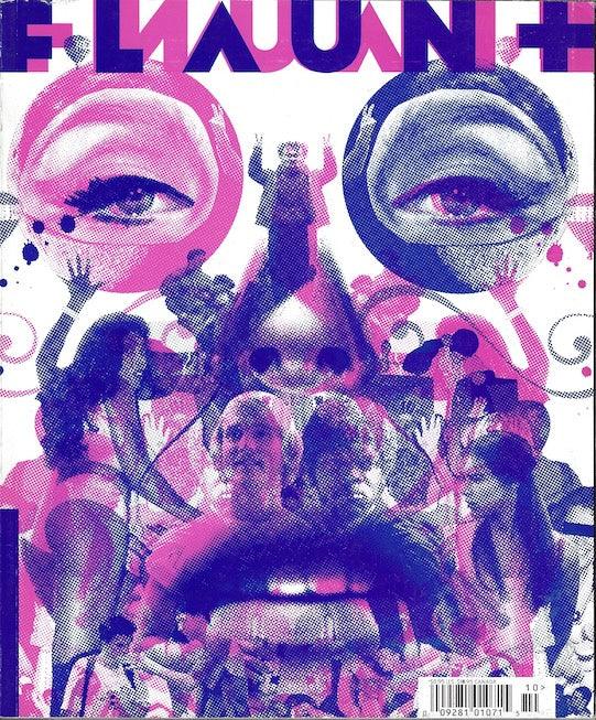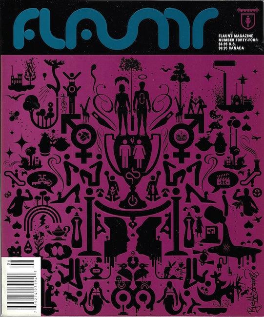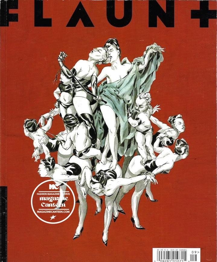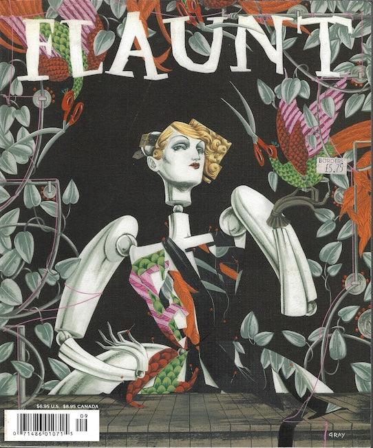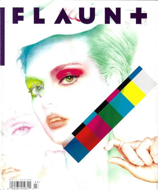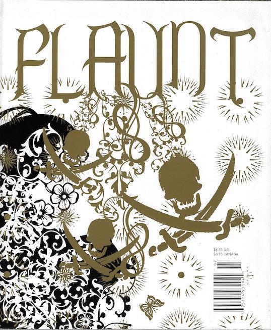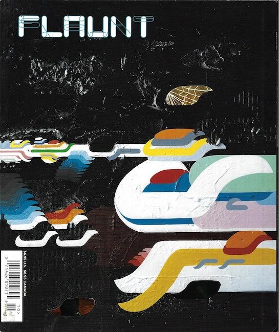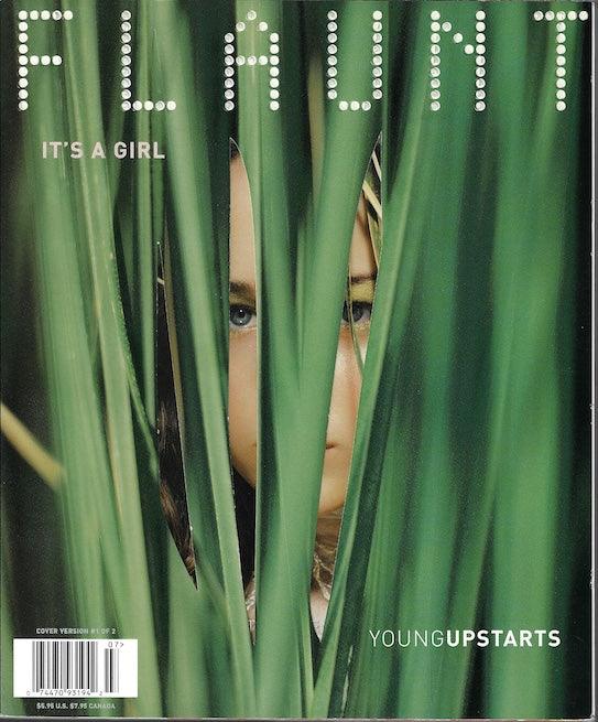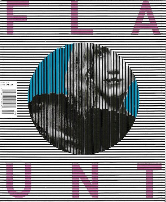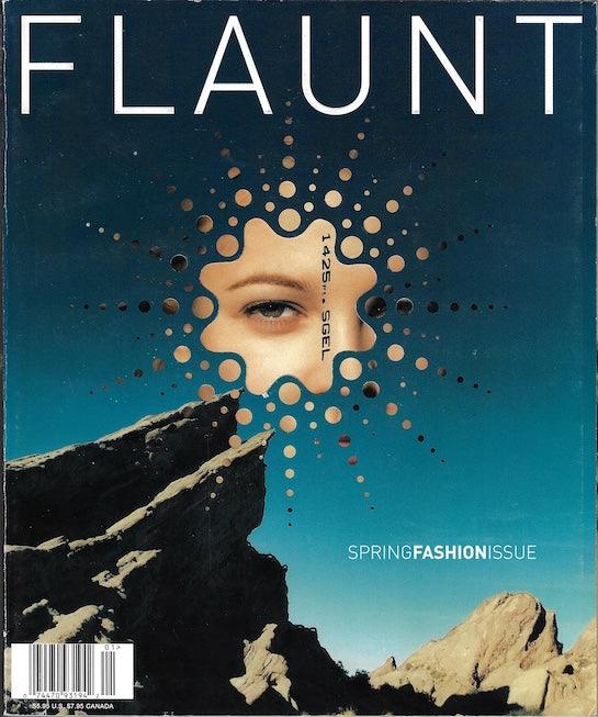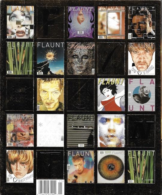 Flaunt Magazine. Flaunt has a unique style of presenting the front cover as an unusual cover artwork. The major celebrity or model image is revealed after this, on the internal secondary cover. The collection below will sometimes show both front and internal cover in any order. The artwork cover is always the front cover.