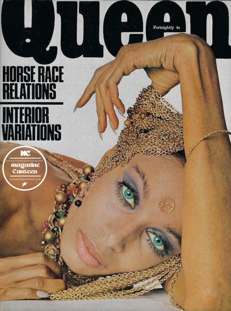 Queen Magazine. A rare and historic archive of Queen Magazine from the UK. A beautiful fashion magazine. Following on from The Queen Magazine. The concept of Queen magazine was retried in the 1970s as it joined forces with Bazaar and Harpers Bazaar to then become Harpers and Queen.
