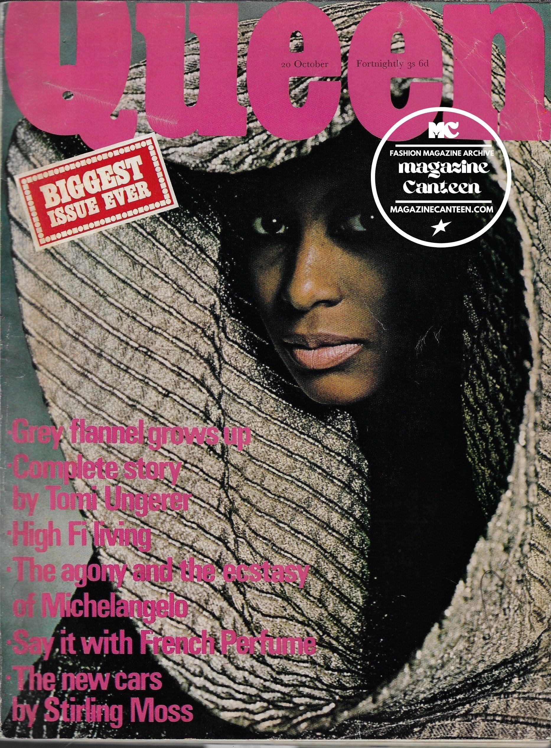 Queen Magazine. A rare and historic archive of Queen Magazine from the UK. A beautiful fashion magazine. Following on from The Queen Magazine. The concept of Queen magazine was retried in the 1970s as it joined forces with Bazaar and Harpers Bazaar to then become Harpers and Queen. We stock numerous issues from all collections. Earlier issues of Queen are now located here