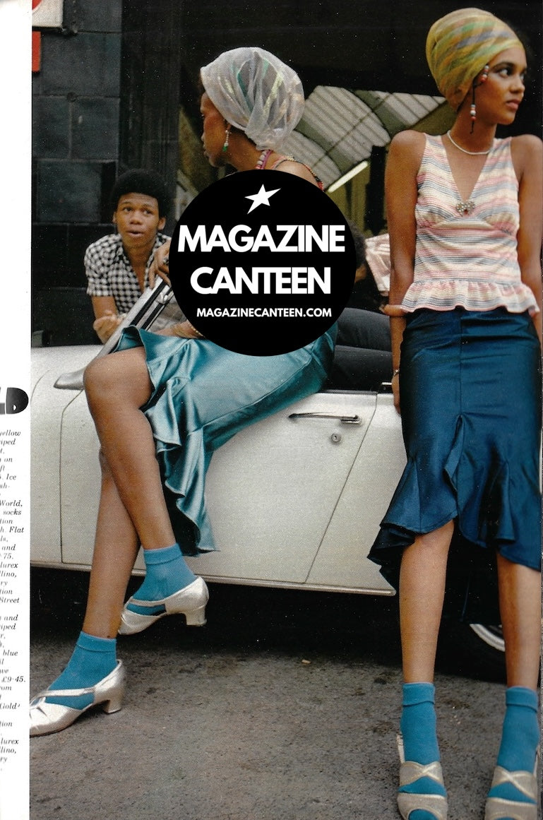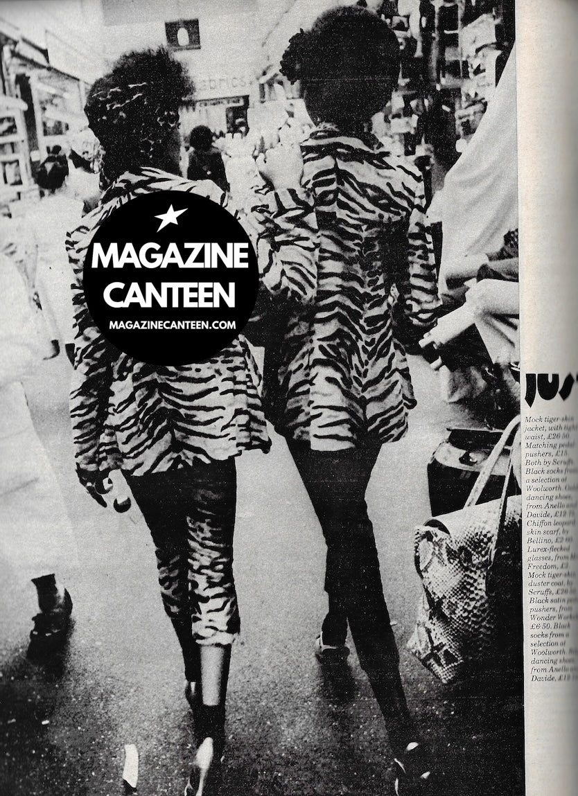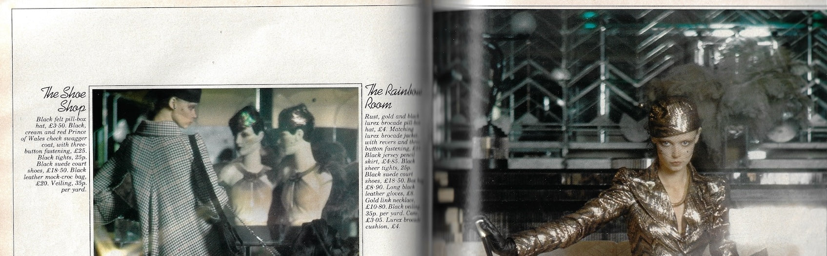 12 pages of fashion editorial photographed at the Biba store by John Bishop. Includes Mouche and one other models. And on occasion, one gent and young boy.