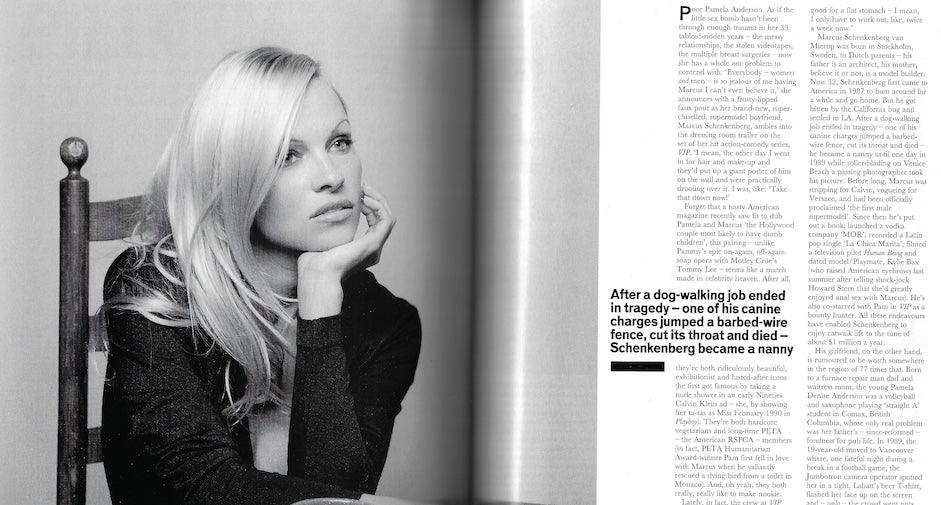 Editorial with Pamela Anderson includes Marcus Schenkenberg