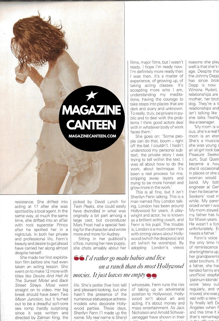 Fenne Fatale - 5 pages with Sherilyn Fenn - Includes 4 brilliant images by Steven Klein
