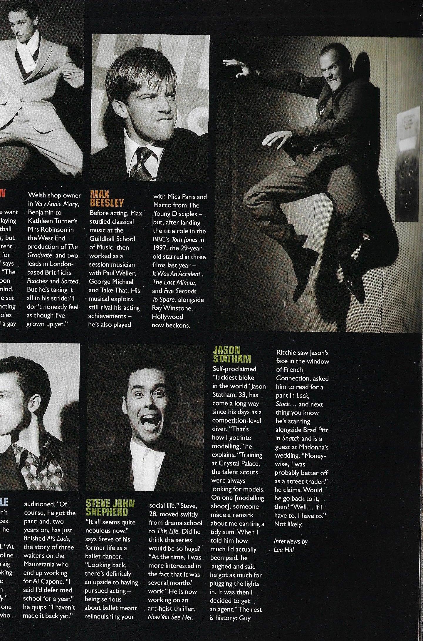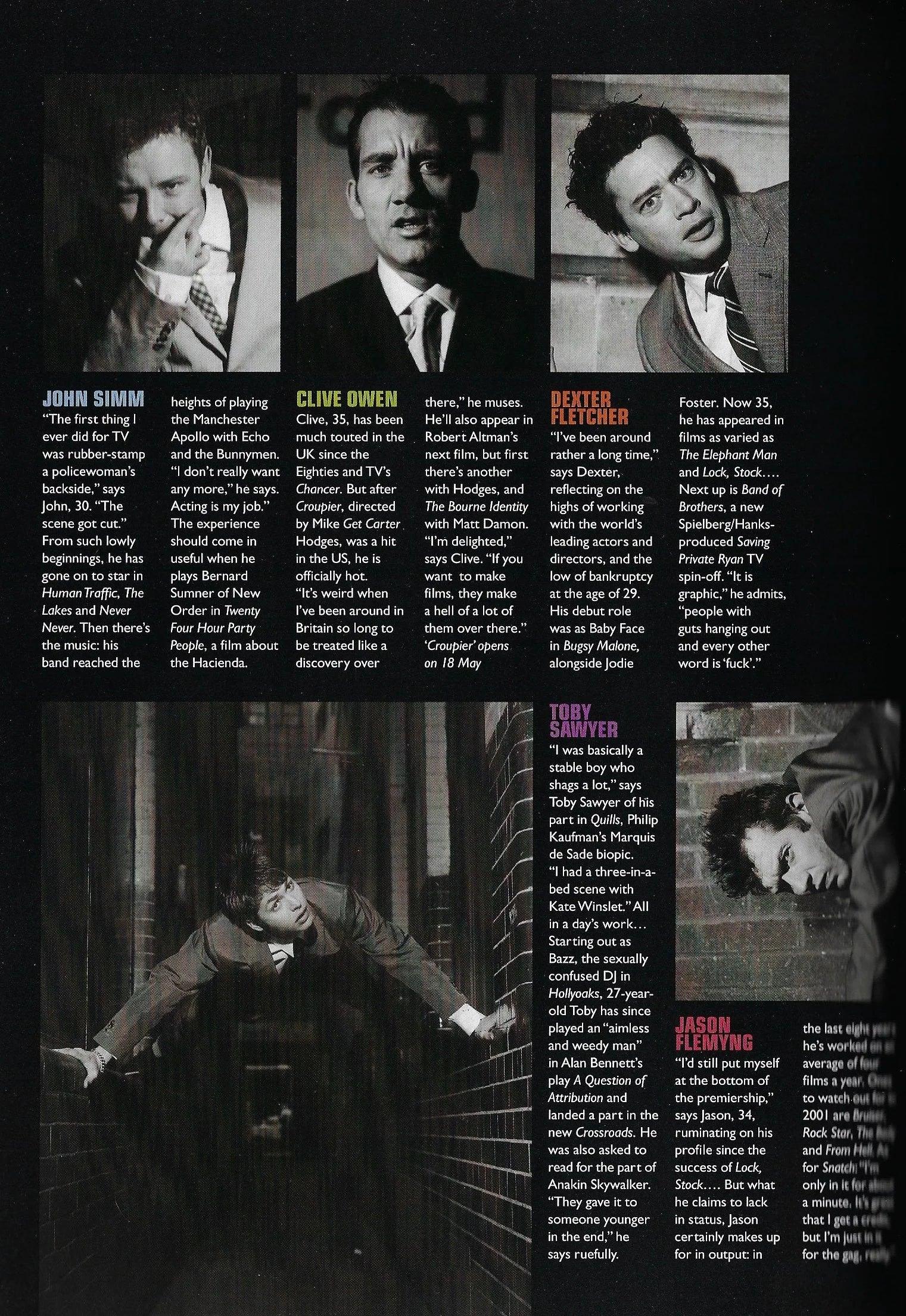 Brit Parts - An exclusive large male fashion section starring British Actors. One page each with. John Simm. Clive Owen. Dexter Fletcher. Toby Sawyer. Jason Flemyng. Matthew Rhys. Max Beesley. Jason Statham. Ralf Little and Steven John Shepherd.