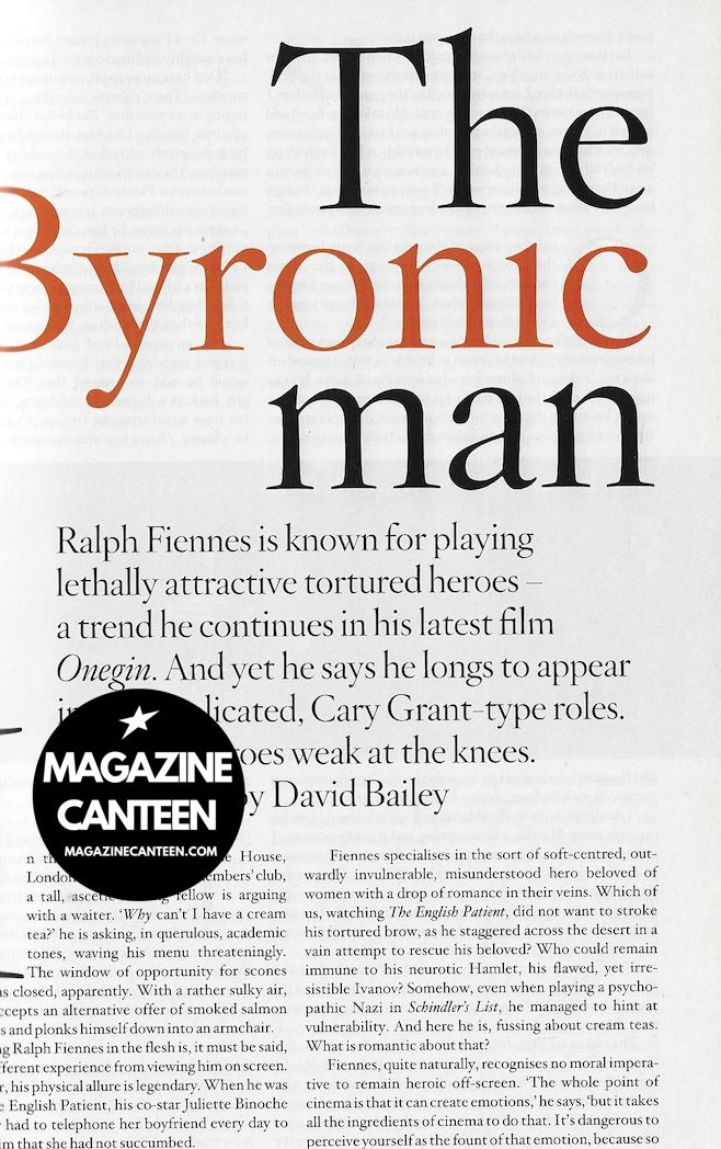 The byronic man - 4 pages with Ralph Fiennes - includes a full page image by David Bailey