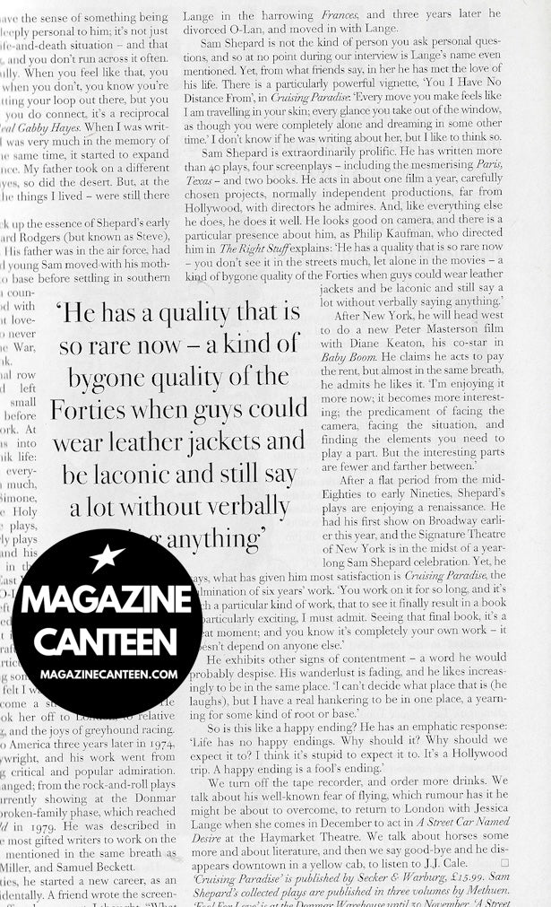 Pale writer - 4 pages with Sam Shepard - includes 2 images by Bruce Weber