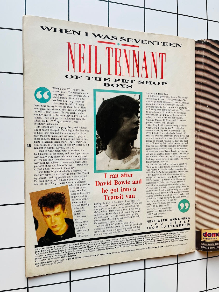 Just Seventeen Magazine - NEIL TENNANT Pet Shop Boys 17