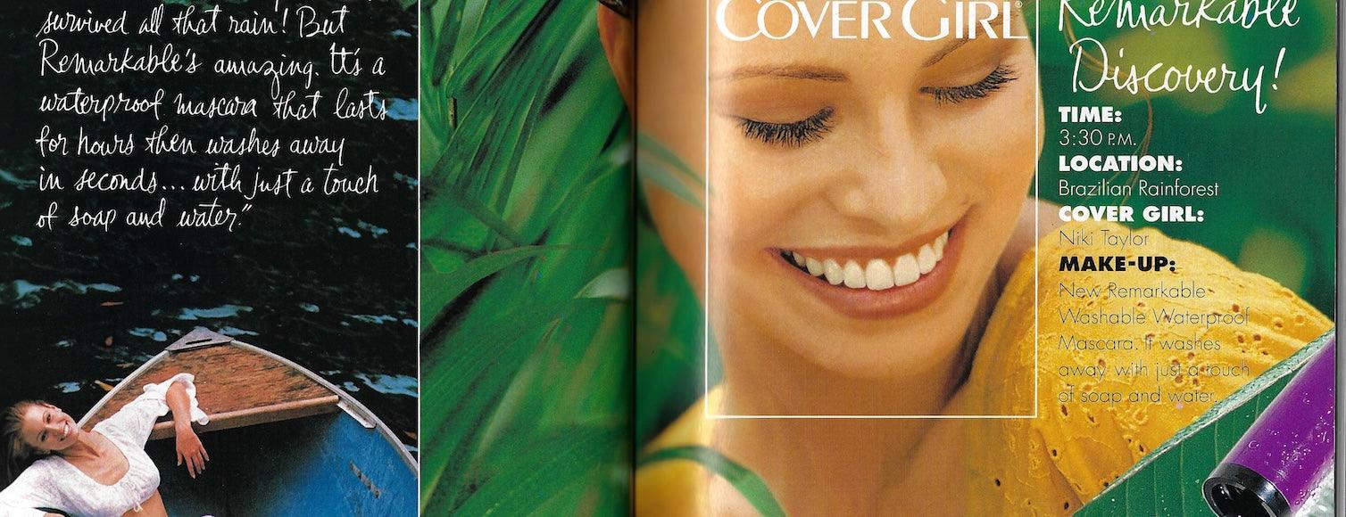 A 2 page advert for CoverGirl with Niki Taylor