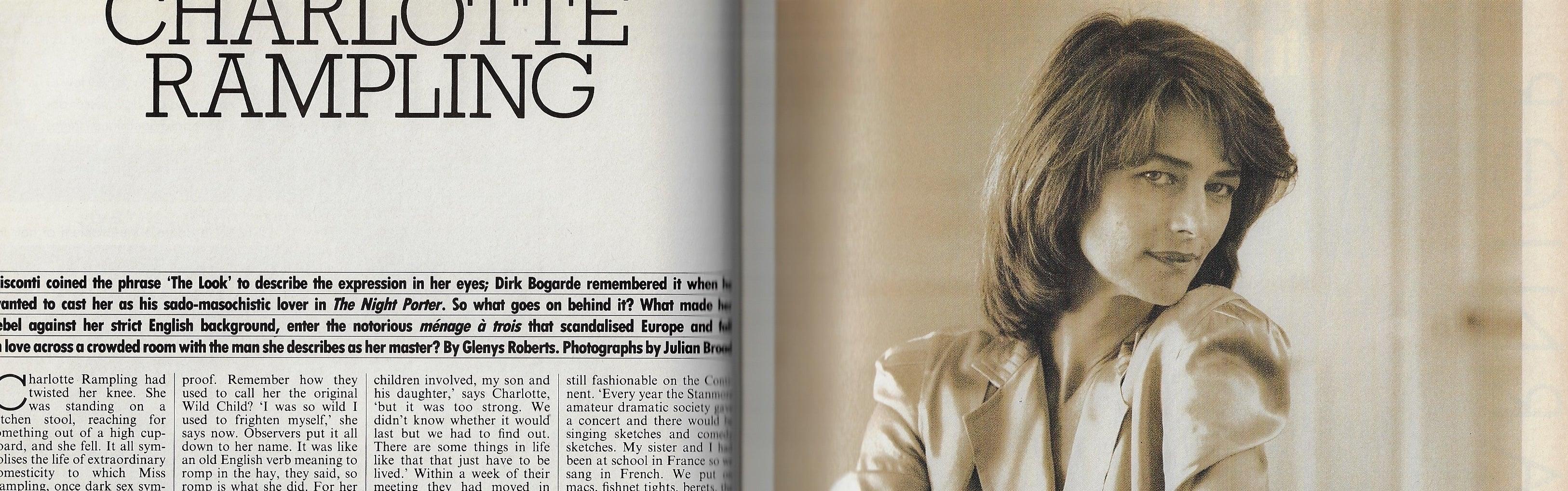 Interview - 4 pages with Charlotte Rampling - includes 2 images by Julian Broad