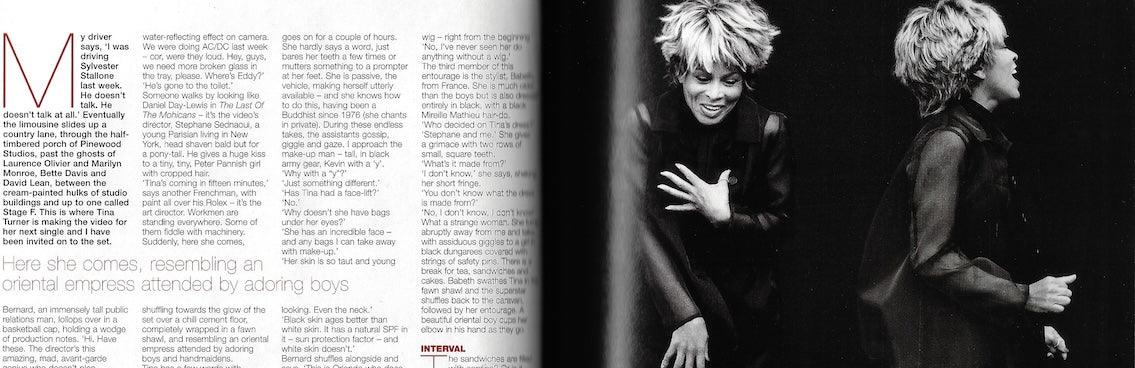 Interview - A 6-page feature with Tina Turner. The article includes images by Peter Lindbergh which are probably not exclusive to the publication.