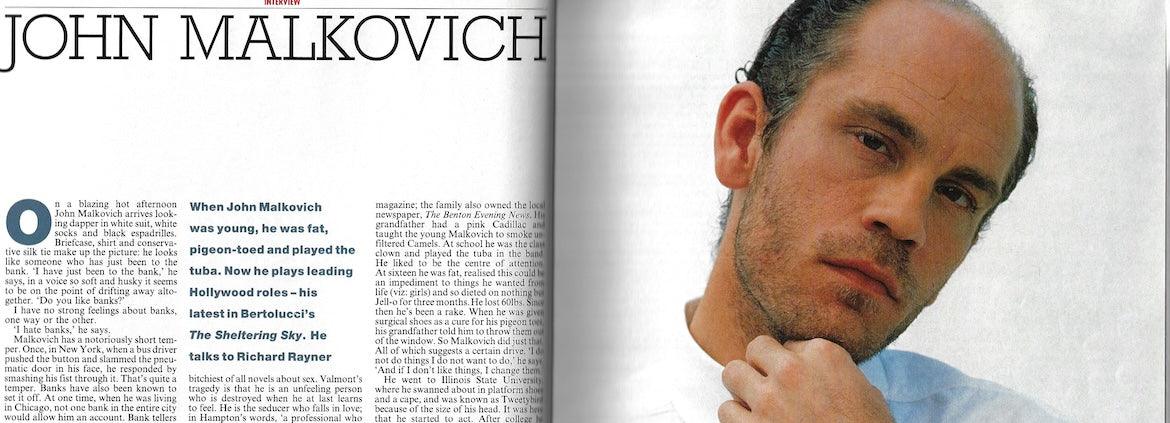 Interview - 3 pages with John Malkovich - includes a full page image by JOhnny Rozsa