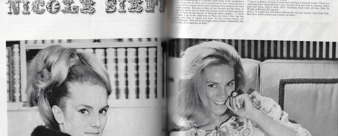 Editorial with 1 page of Nicola Casson. 2 pages with Fenella Fielding and 2 pages with Nicole Sieff. Plus 2 pages with Mary Quant. And one page with Frances Stuart - IMages by David Montgomery
