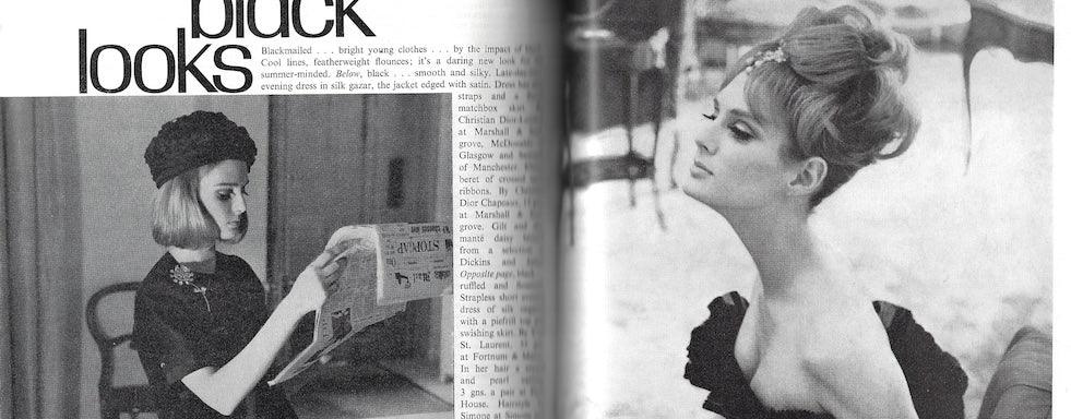 Black looks - 6 pages of fashion - photographer unknown. We feel the model could be Paulene Stone