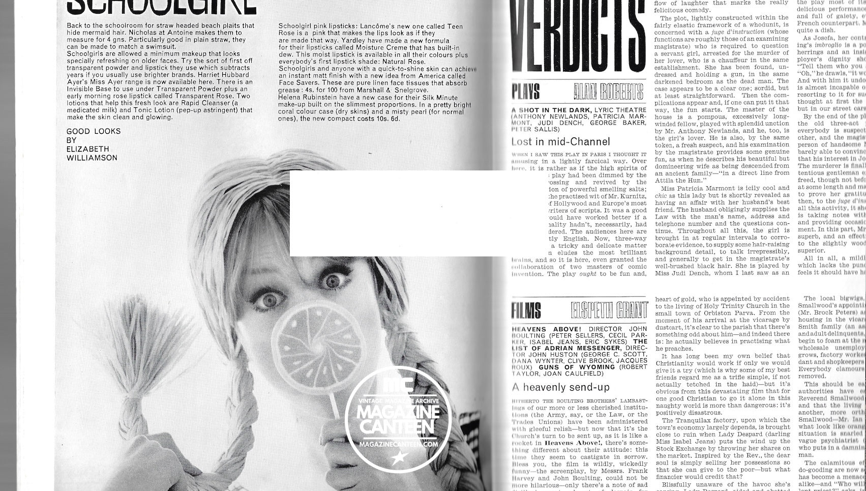 Schoolgirl - A 1 page beauty image by Barry Warner. We feel quite certain that the young model with pigtails is Pattie Boyd, albeit hiding behind a lolly.