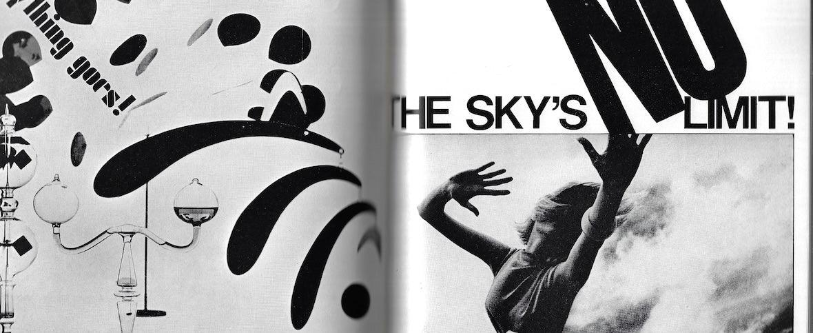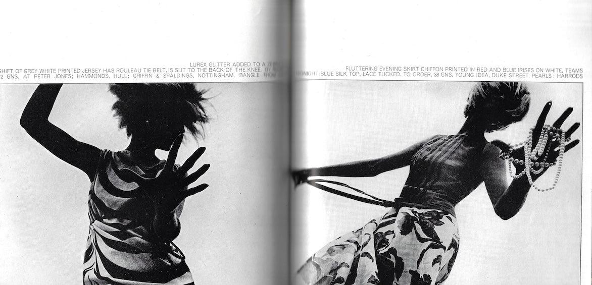 The sky's the limit - 8 pages of fashion with a model with out reaching hands photographed by Maurice Pascal. Obscure mostly but we are quite sure this is Jill Kennington, from one side image viewed.