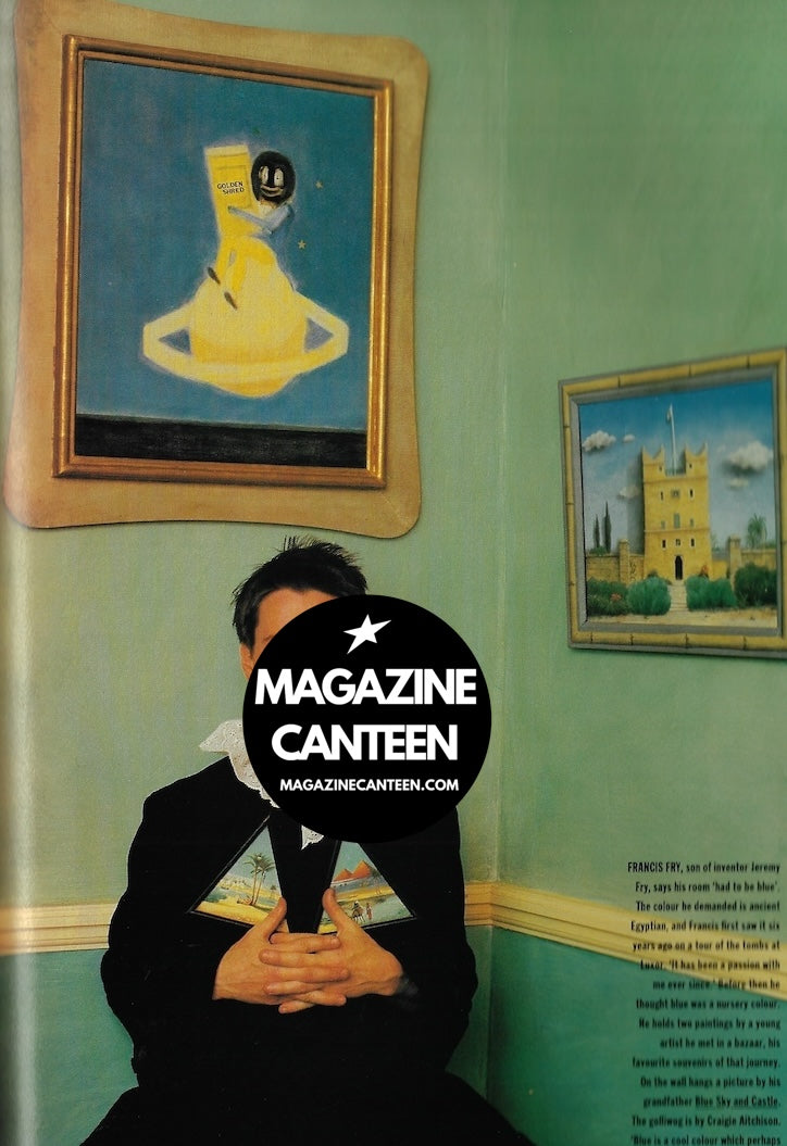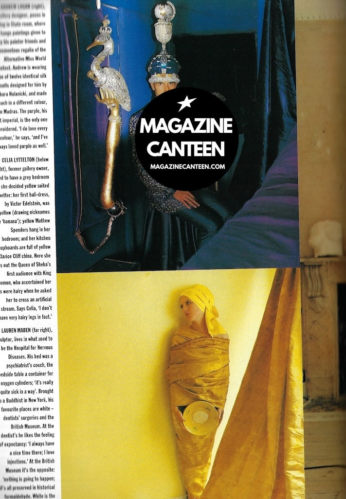 A room with a hue - 6 pages of portraits photographed by Arabella Ashley and styled by Isballa Blow. The images includes Francis Fry. Philip Core. Lady St Just. Lauren Maben, And a smaller image of Andrew Logan.