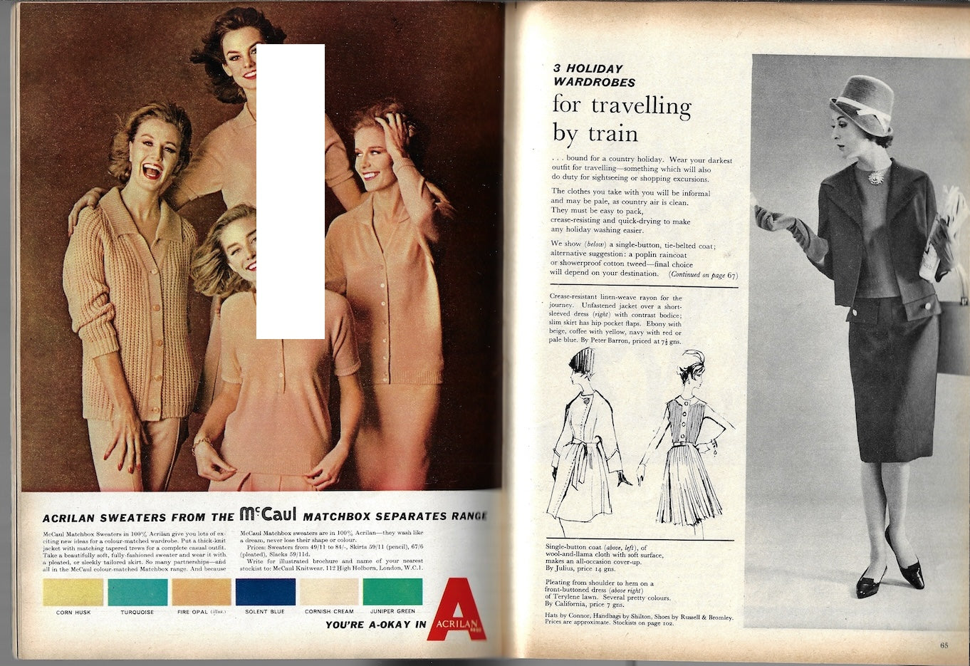 1 page advert for Acrilan sweaters with 4 models includes Jean Shrimpton