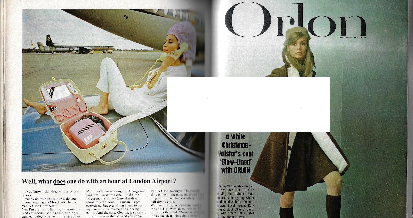 1 page with Paulene Stone for Rembrandt. 2 different adverts with Jean Shrimpton in a box for Chemstrand. 1 page with Jean Shrimpton for Orlon - plus more