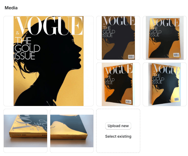 The first image shown is from Google. In order for the magazine to be sold, a barcode sticker was placed in the corner of the cover as shown. The second image is of our scan.... which does not do justice to the flawless mirror effect of the gold.