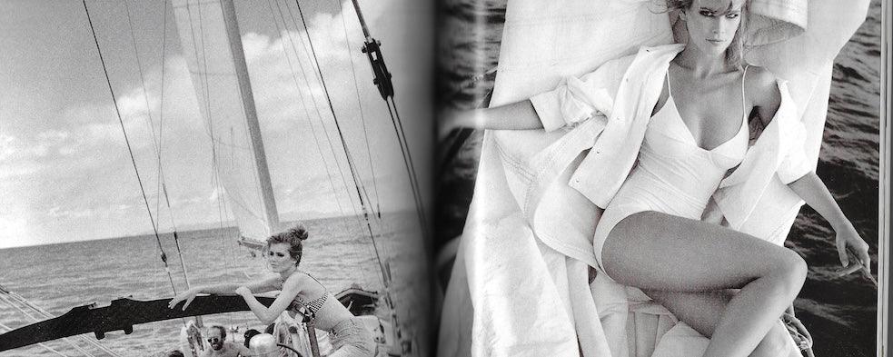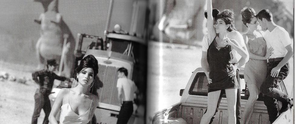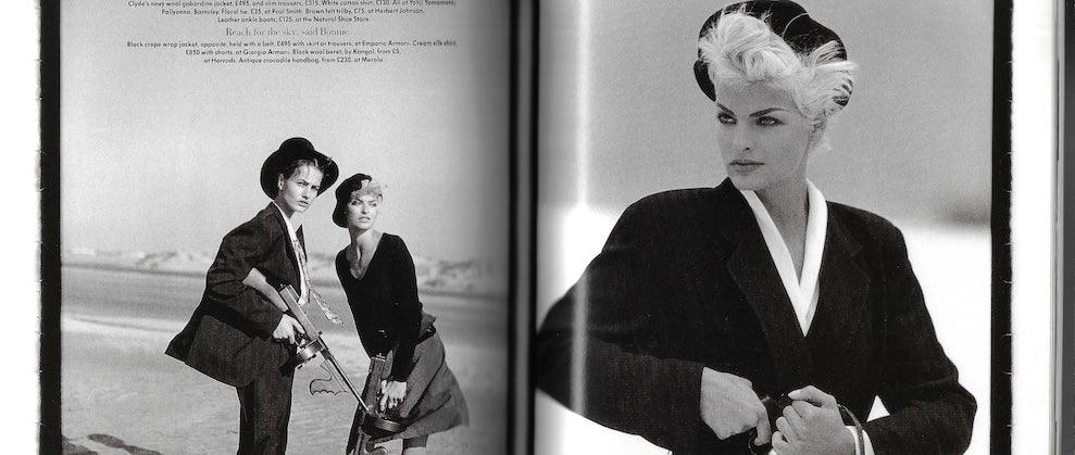 10 pages with Karen Mulder and Linda Evangelista by Peter Lindbergh. This shot is in the style of Bonnie and Clyde