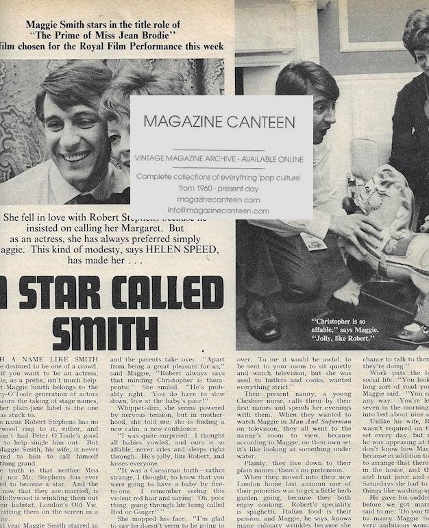 A star called Smith - A 2 and a half page article with Maggie Smith - includes 1 image with Robert and one image with Maggie, Robert and young Christopher on a small toy horse.