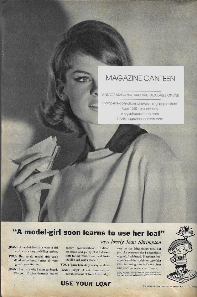 The inside cover includes a 1 page advert for bread with Jean Shrimpton