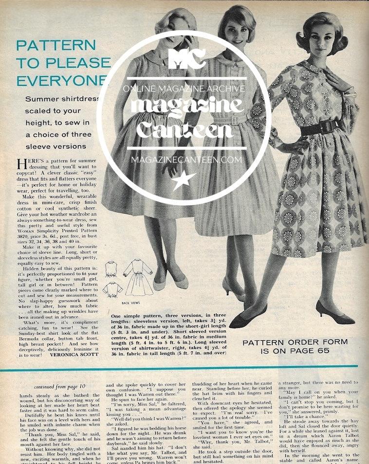 Patterns to please everyone. A half page fashion image with 3 models. After 'quite a lot' of scrutiny, we feel that the middle model is actually Jean Shrimpton.