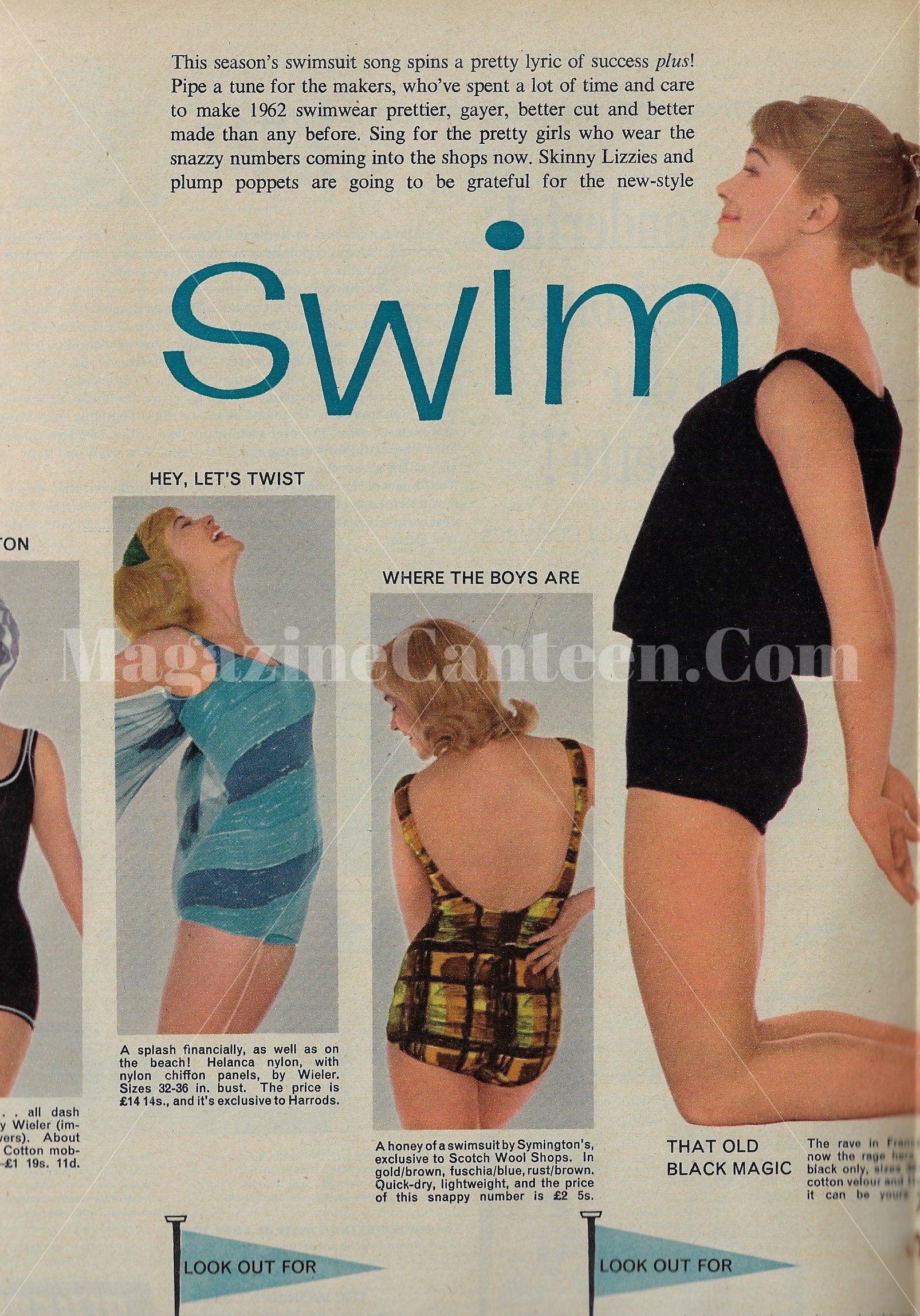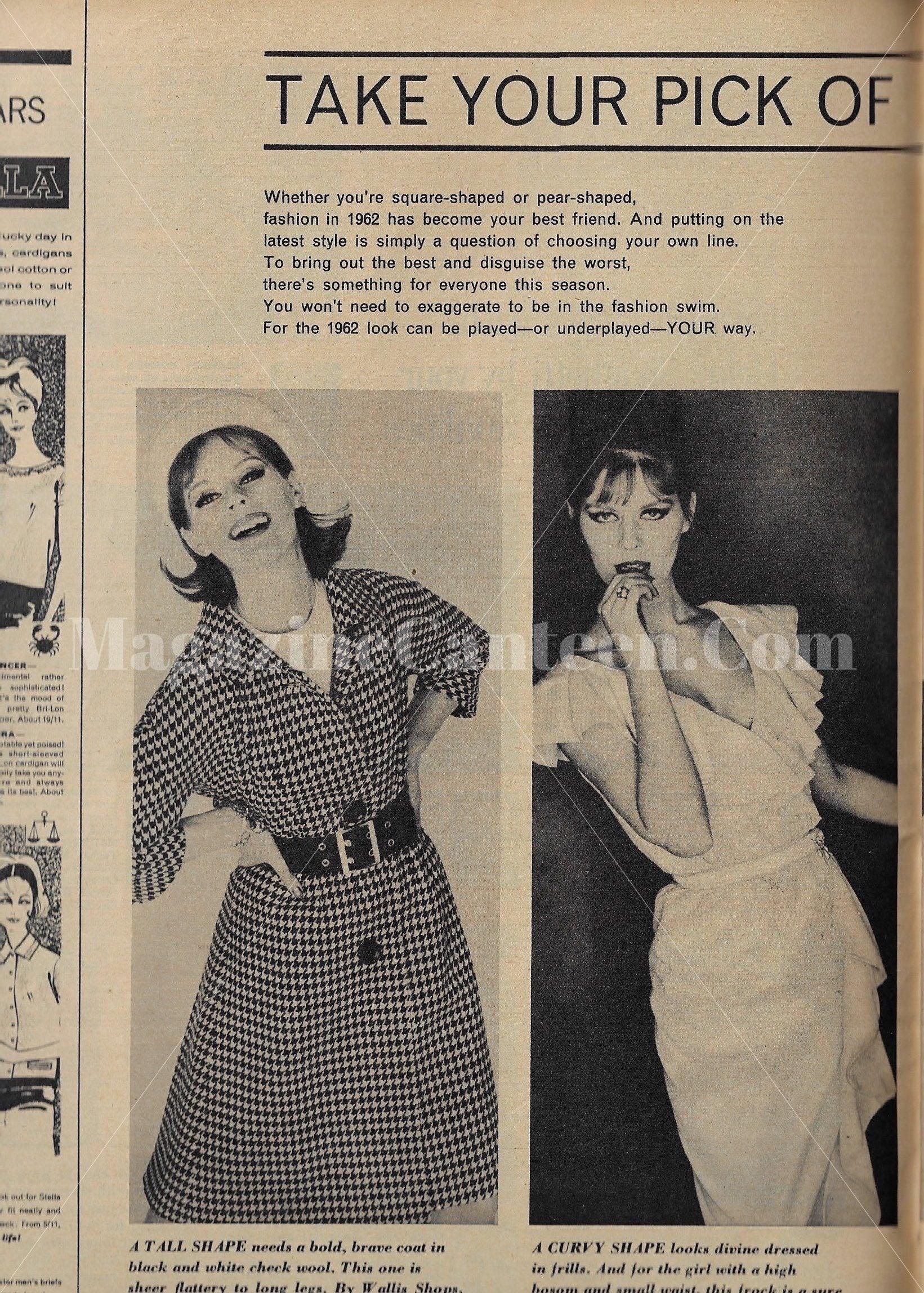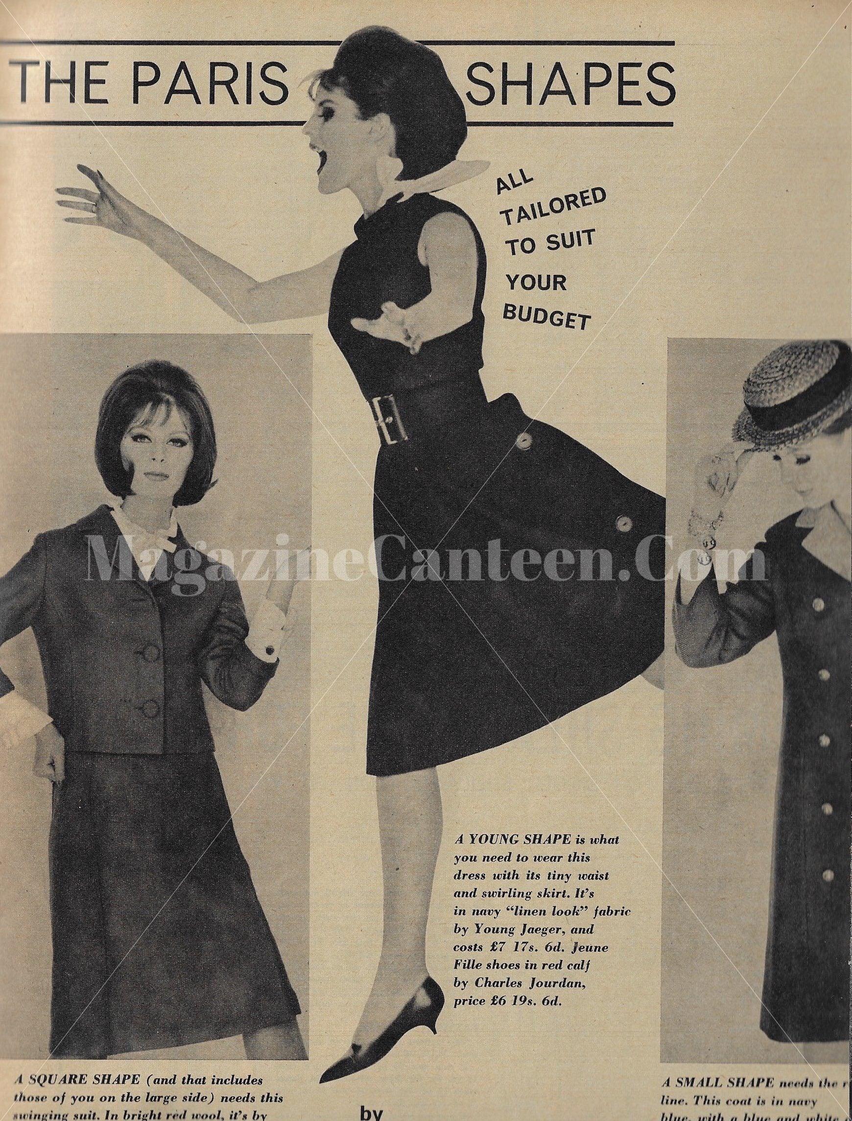 2 pages of fashion, uncredited. Modle possibly Paulene Stone