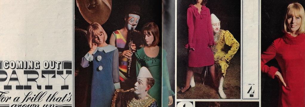 2 pages of fashion by Antony Norris with clown and female model