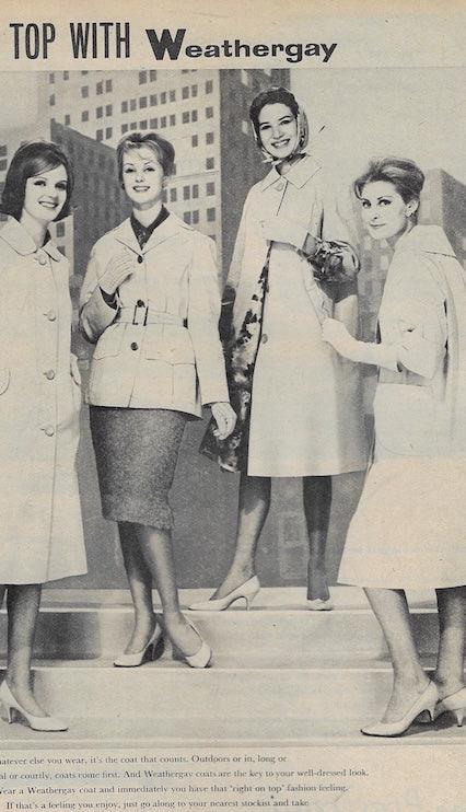 A one page advert for Weathergay coats - Of the 4 models,a young Grace Coddington to the left.