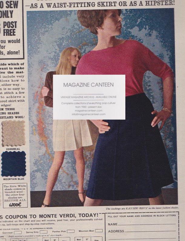 A one-page advert for 'A waist fitting hipster skirt, with 2 models, one of whom is. Pattie Boyd. See image 2